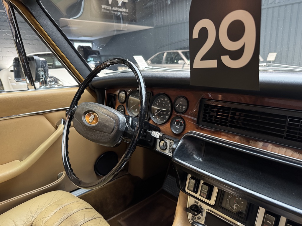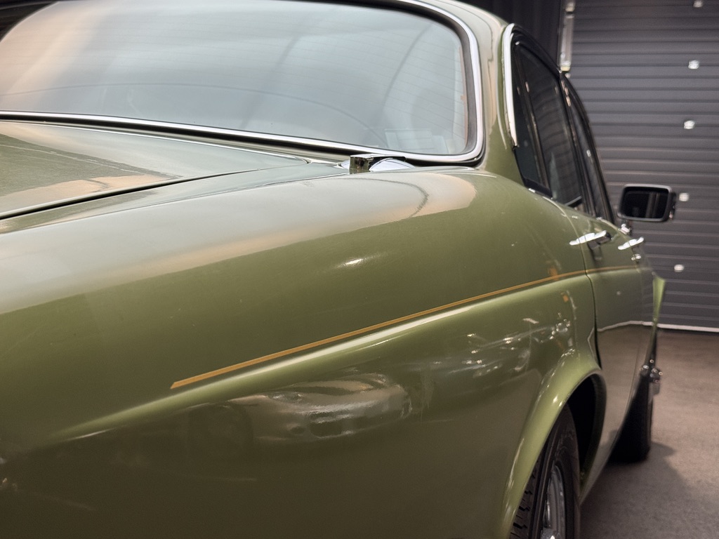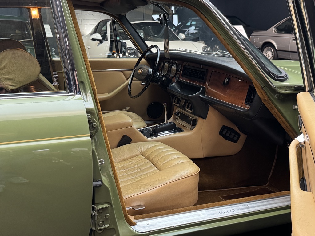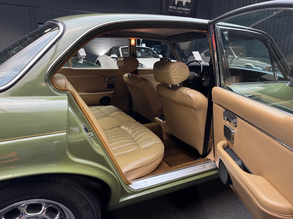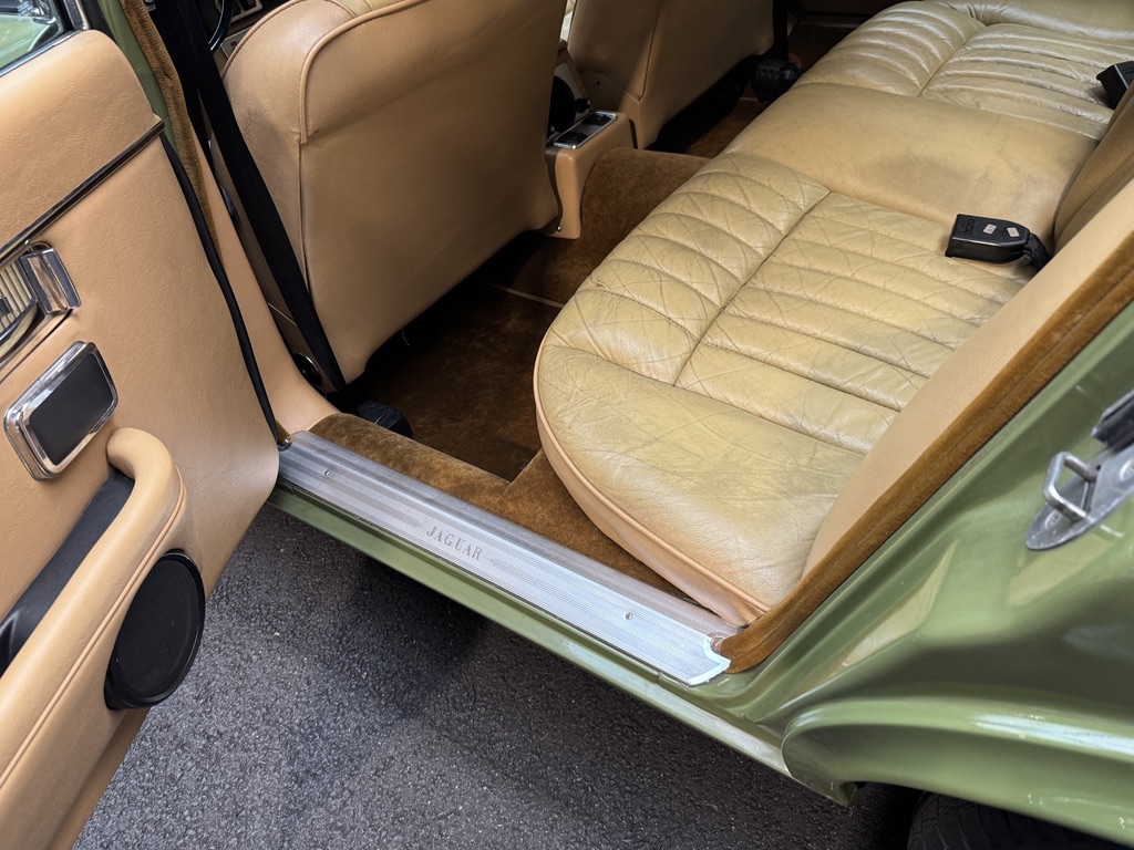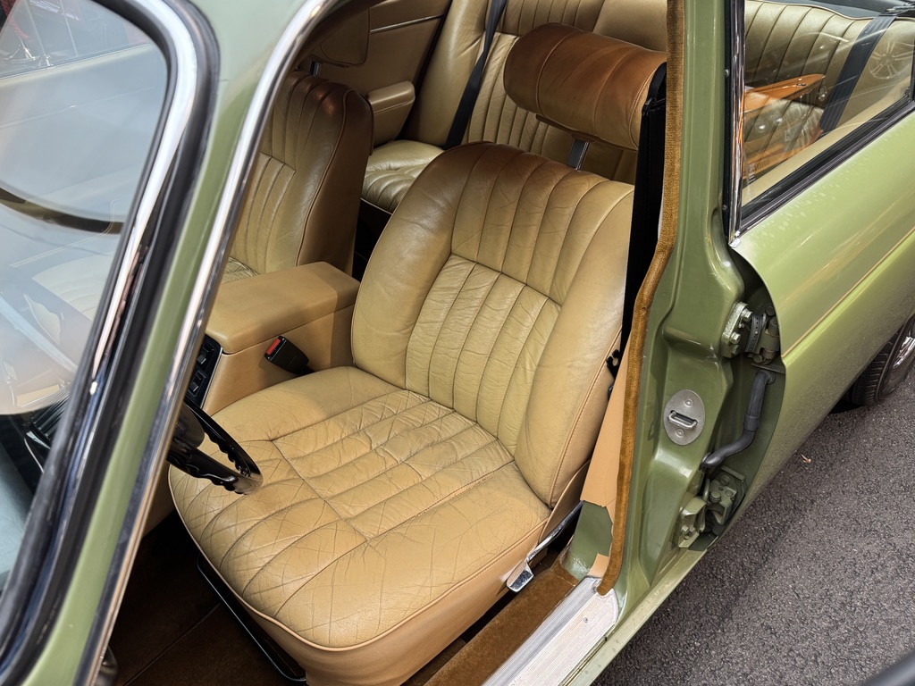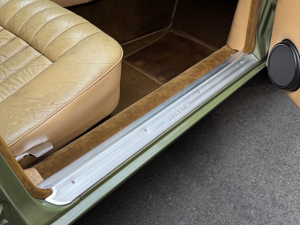 Dieser XJ in perfekter 70er Jahre Farbkombi ging ursprünglich nach Madrid. 2021 fand er seinen Weg von Spanien nach Deutschland. Die Historie ist vorhanden einschließlich Rechnungen zurück bis 1996 sowie die originalen spanischen Nummernschilder von damals. Es ist ein Kompressionsdiagramm vorhanden sowie ein Wertgutachten aus 2022, das einen Wert von 19.300 € bescheinigt. Der jetzige Eigentümer erwab den Jaguar bei einem renommierten Hamburger Oldtimerhändler für den Kaufpreis von 23.000€. Wir kennen den Wagen schon sehr lange. Er fährt wirklich super und ist absolut zuverlässig. Ein treuer und zuverlässiger Alltagsbegleiter, der unglaublich viel Spaß macht. Die Innenausstattung ist ein Traum und in wirklich gutem Zustand. Seine in Teilen matt gewordene Lackierung passt perfekt zum gesamten Erscheinungsbild. Ein Auto, dass man gerne ansieht, fährt und mal eben mit der Hand über den Lack streicht. Ein echtes Original. Restaurieren? Behave…!