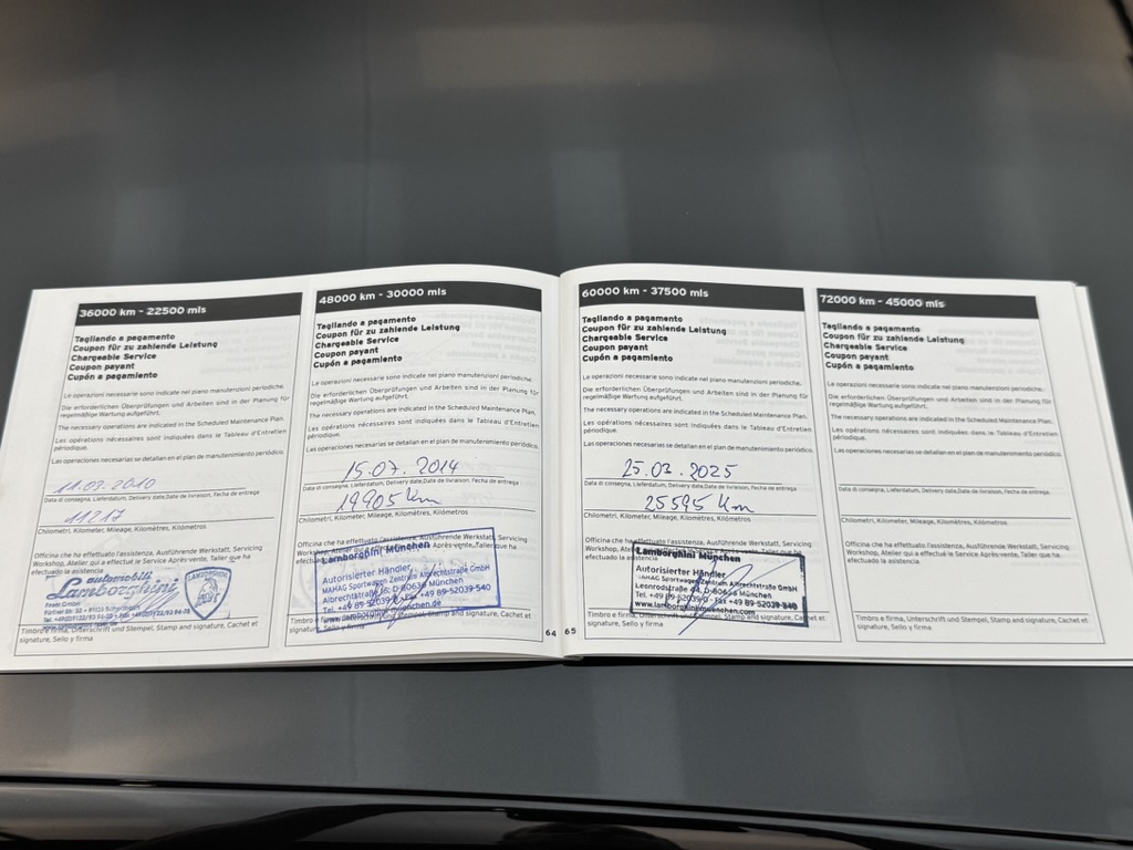 Dieser Lamborghini ist eine deutsche Auslieferung und hatte bisher lediglich zwei Halter in Süddeutschland. Im Besitz des derzeitigen zweiten Halters ist er seit 2009 nun schon ganze 16 Jahre. Gekauft wurde er bei Lamborghini Feser in Nürnberg. Der Zustand ist wirklich besonders. Der Wagen hat seinen ersten Lack (bis auf eine kosmetische Nachlackierung am hinteren, rechten Seitenteil), seine erste Windschutzscheibe, seine ersten Bremsen (!) sowie seine erste Kupplung (!), die mit einem gemessenem Wert 2.02 mm kaum verschlissen ist. Deutlicher kann bei einem Fahrzeug nicht erkennbar sein, wie unglaublich pfleglich damit umgegangen wurde. Den letzten Service gab es 03/25 bei Lamborghini München 03/25. Dabei wurden auch Batterie und Zündkerzen erneuert. Bremsflüssigkeit wurde 2024 getauscht. Zu dem Fahrzeug existiert eine komplette Rechnungshistorie. Die zwei Originalschlüssel sind vorhanden wie auch die zwei originalen Notschlüssel. Dieser Gallardo ist wirklich etwas Besonderes. In diesem Zustand und in dieser vollwertigen Konfiguration ergibt sich hier die Gelegenheit, sich einen perfekten Lamborghini-Traum zu erfüllen. Der Wagen ist übrigens trotz seiner geringen Laufleistung keine “Standuhr“. Die Anreise über 800 km erfolgte selbstverständlich auf eigener Achse.