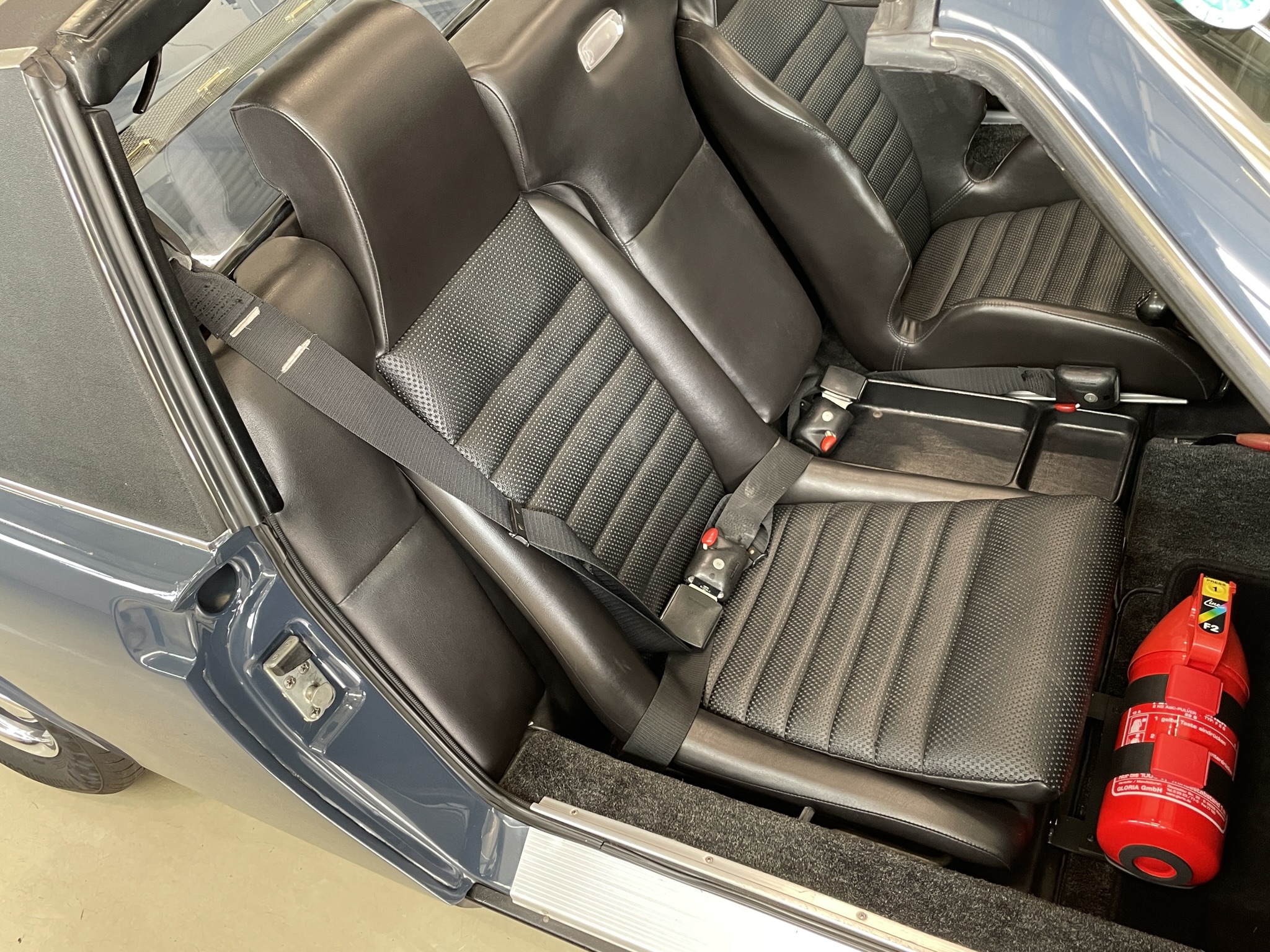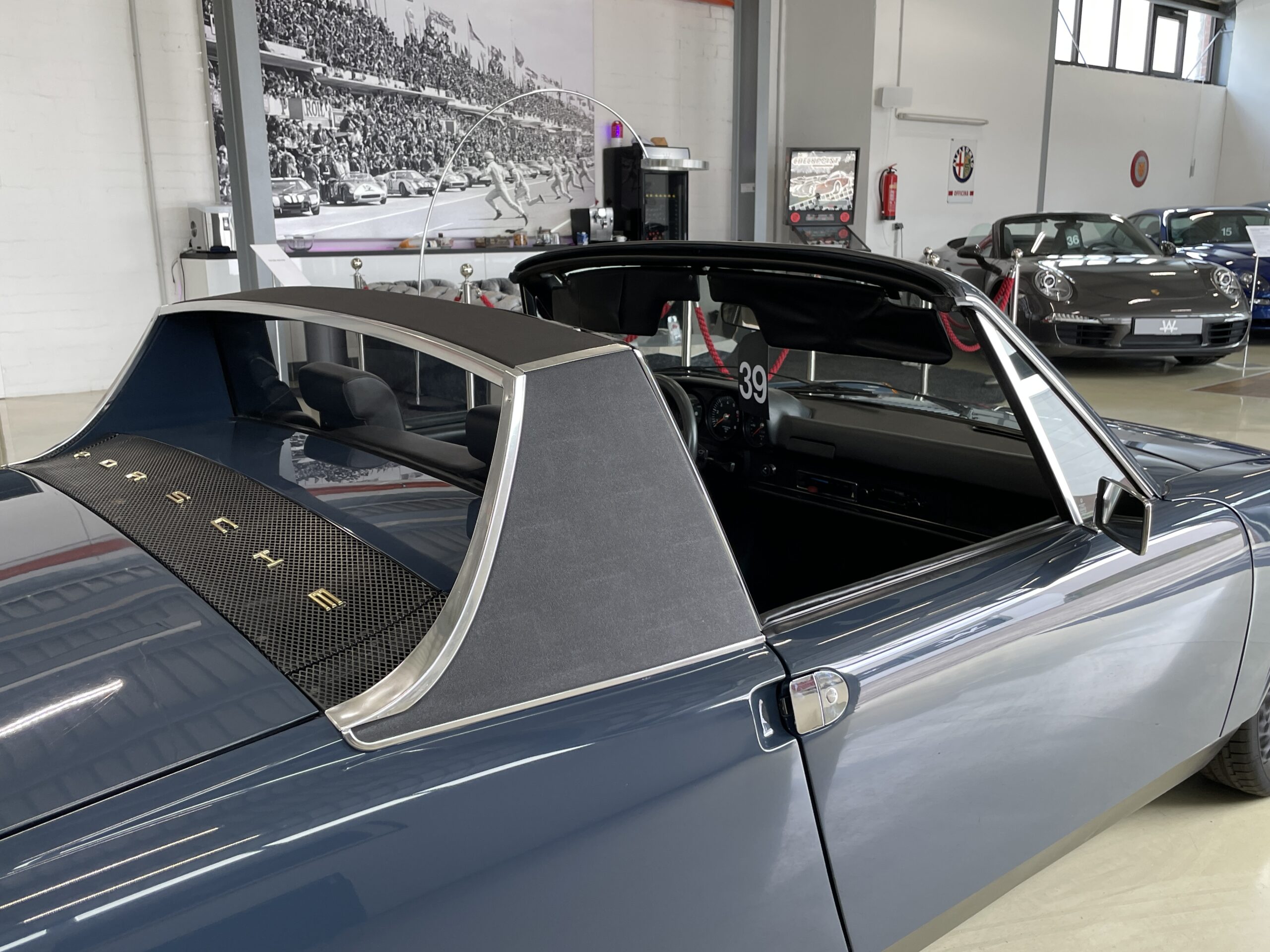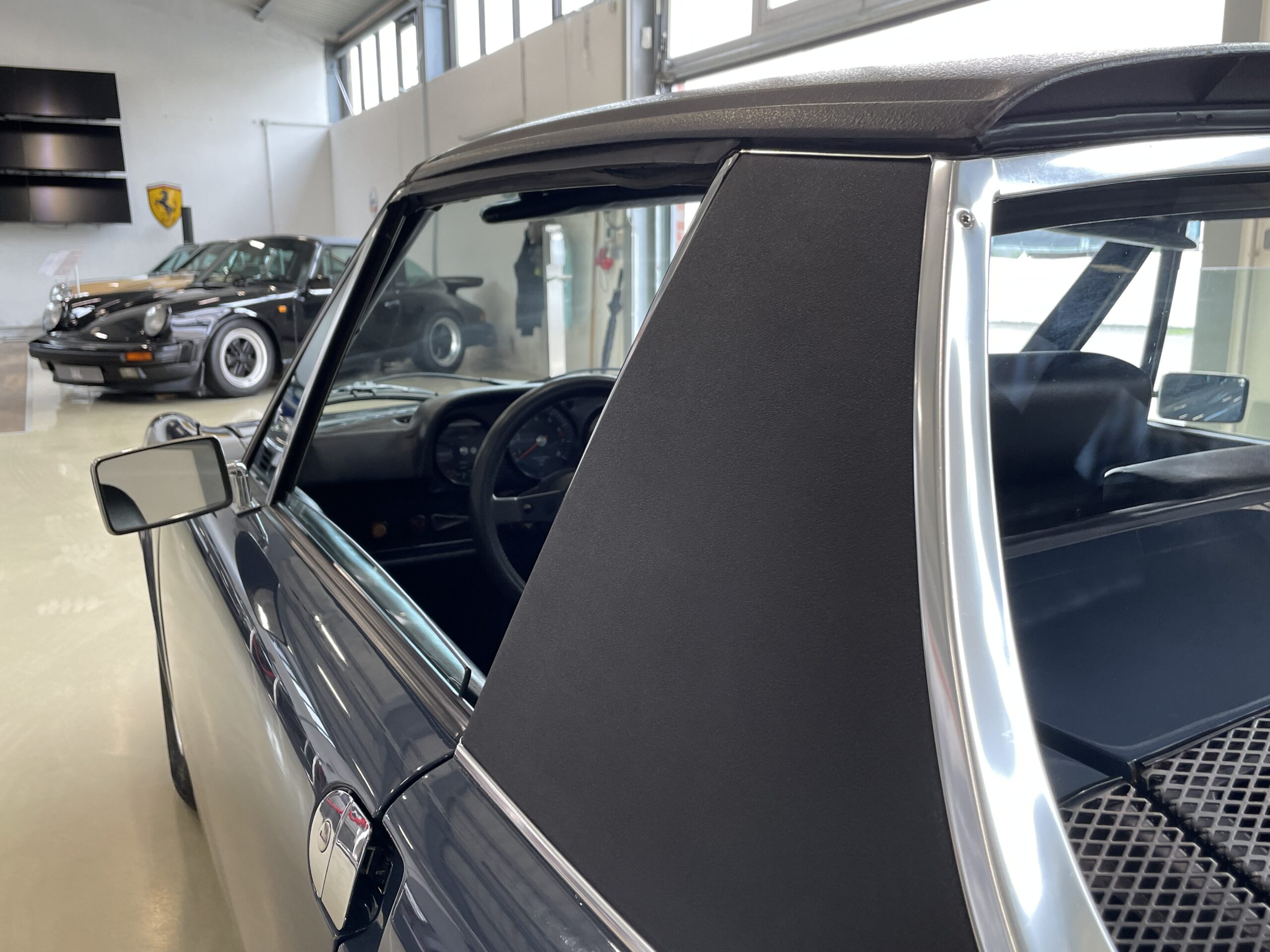 Dieser Porsche wurde im Gegensatz zu den Vierzylinder-Versionen nicht bei Karmann sondern bei Porsche in Stuttgart gebaut und 1969 in Culver City – Kalifornien ausgeliefert. 1986/87 wurde er von einem Porsche Spezialisten umfassend restauriert. Dabei erhielt der Mittelmotor-Sportler die originale und sehr passende Porsche Farbe Ätnablau. Die Innenausstattung ist makellos und mit einem originalen Sport-Fahrersitz ausgestattet. Die Porsche Geburtsurkunde bescheinigt die Originalität. Aktuell wurden neu Fuchs-Felgen mit Reifen von 2022 aufgezogen, ebenso wurde ein neues Momo Prototipo sowie ein Ölkühler montiert. Der sehr leichte Sportler mit seinem kraftvollen Sechzylinder-Boxer in Mittelmotoranordnung und mit hinten angeordnetem Getriebe ist ein erstaunlich flinker und potenter Sportwagen. Dabei bieten die zwei Kofferräume vorne und hinten viel Platz für die Reise zu Zweit und zeigen damit, wie viel Potenzial in diesem frühen Konzept liegt. Dazu passend lässt sich das Targa-Dach ohne nerviges Falten komplett im Kofferraum verstauen, ohne wie bei anderen Mittelmotorkonzepten den Fahrerraum zu verkleinern. Dieser technische sowie optische Zustand, seine wunderbare Farbe und der Bonus der prominenten Historie machen diesen 914/6 zu einem wirklich besonderen Porsche-Klassiker. Aber auch abgesehen von seinem Wertsteigerungspotential macht er auch einfach viel Spaß.