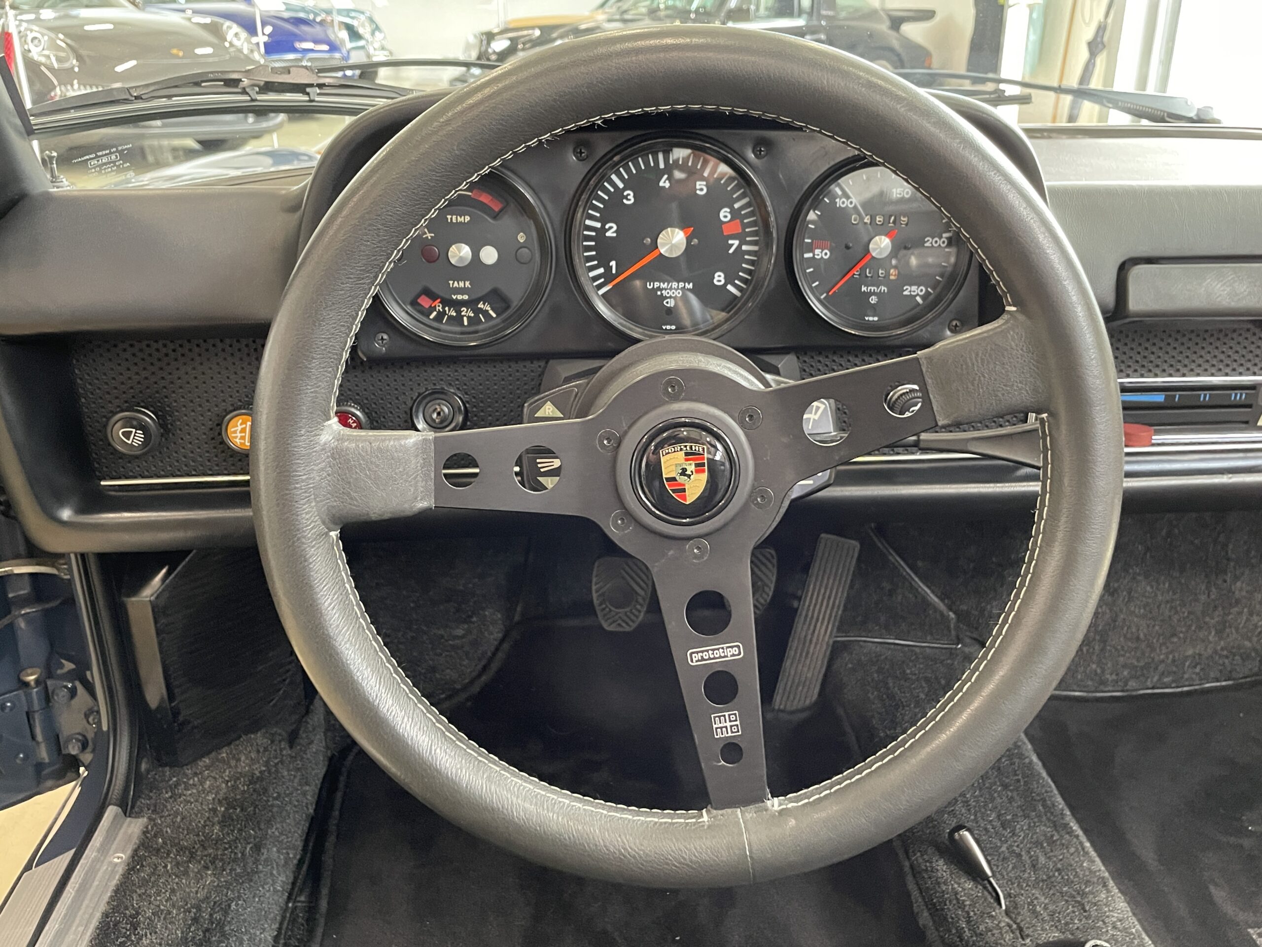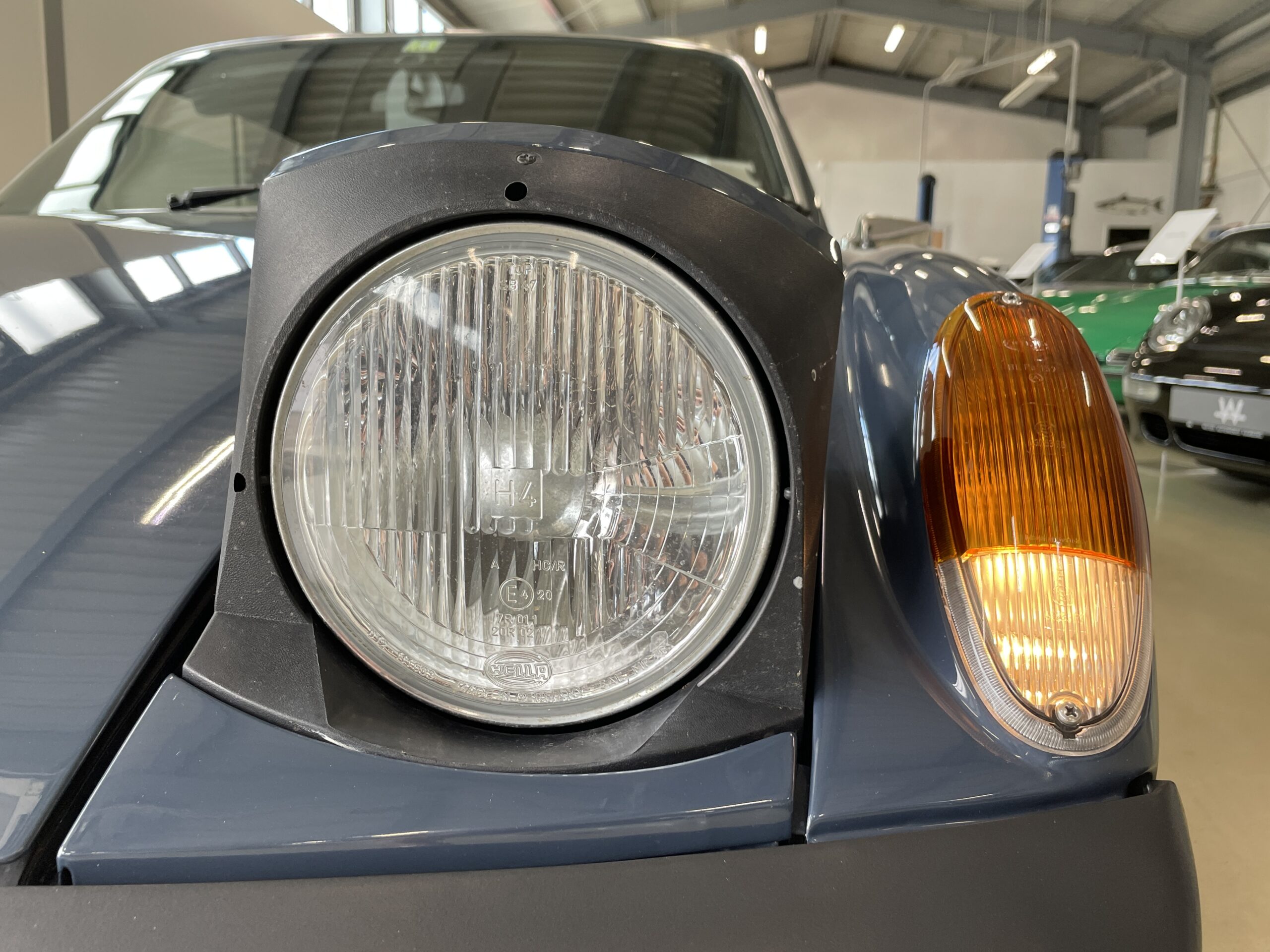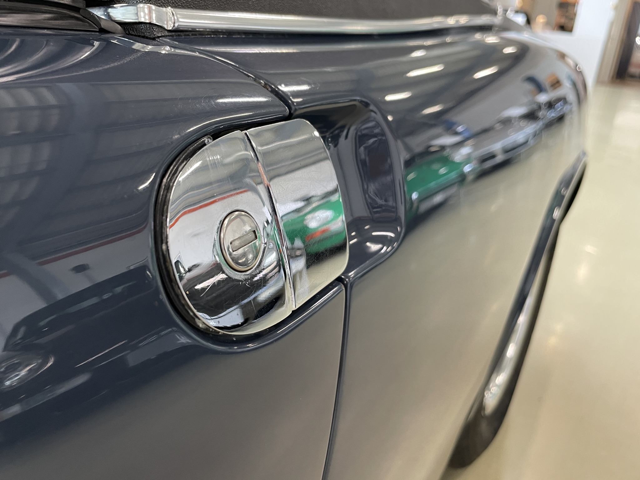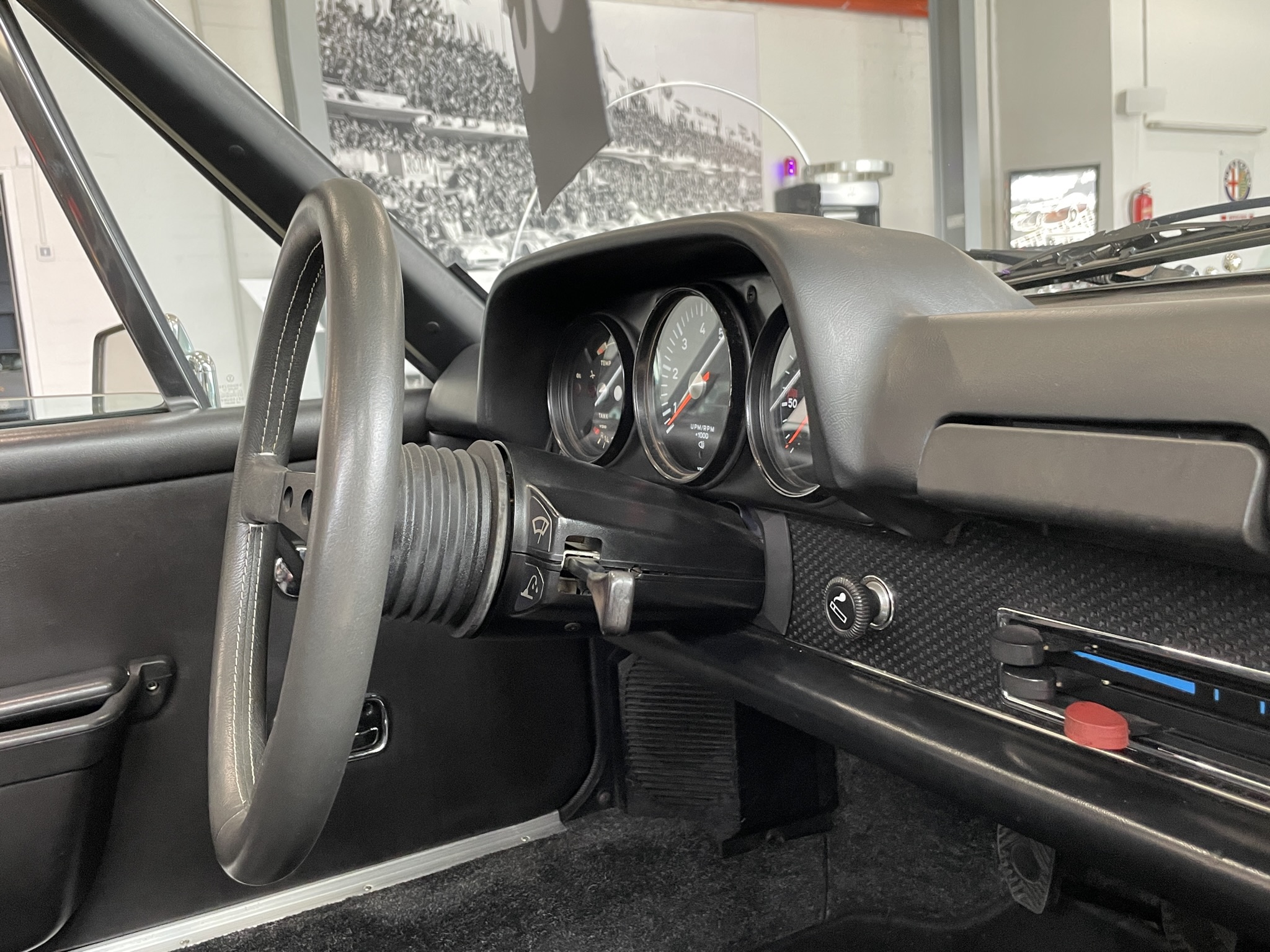 Dieser Porsche wurde im Gegensatz zu den Vierzylinder-Versionen nicht bei Karmann sondern bei Porsche in Stuttgart gebaut und 1969 in Culver City – Kalifornien ausgeliefert. 1986/87 wurde er von einem Porsche Spezialisten umfassend restauriert. Dabei erhielt der Mittelmotor-Sportler die originale und sehr passende Porsche Farbe Ätnablau. Die Innenausstattung ist makellos und mit einem originalen Sport-Fahrersitz ausgestattet. Die Porsche Geburtsurkunde bescheinigt die Originalität. Aktuell wurden neu Fuchs-Felgen mit Reifen von 2022 aufgezogen, ebenso wurde ein neues Momo Prototipo sowie ein Ölkühler montiert. Der sehr leichte Sportler mit seinem kraftvollen Sechzylinder-Boxer in Mittelmotoranordnung und mit hinten angeordnetem Getriebe ist ein erstaunlich flinker und potenter Sportwagen. Dabei bieten die zwei Kofferräume vorne und hinten viel Platz für die Reise zu Zweit und zeigen damit, wie viel Potenzial in diesem frühen Konzept liegt. Dazu passend lässt sich das Targa-Dach ohne nerviges Falten komplett im Kofferraum verstauen, ohne wie bei anderen Mittelmotorkonzepten den Fahrerraum zu verkleinern. Dieser technische sowie optische Zustand, seine wunderbare Farbe und der Bonus der prominenten Historie machen diesen 914/6 zu einem wirklich besonderen Porsche-Klassiker. Aber auch abgesehen von seinem Wertsteigerungspotential macht er auch einfach viel Spaß.