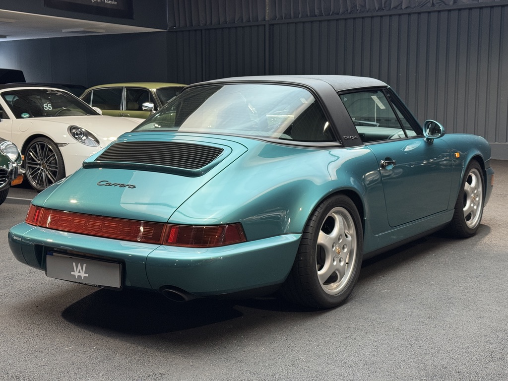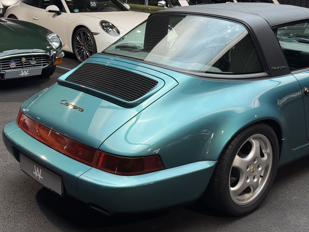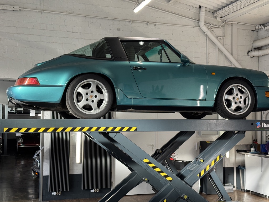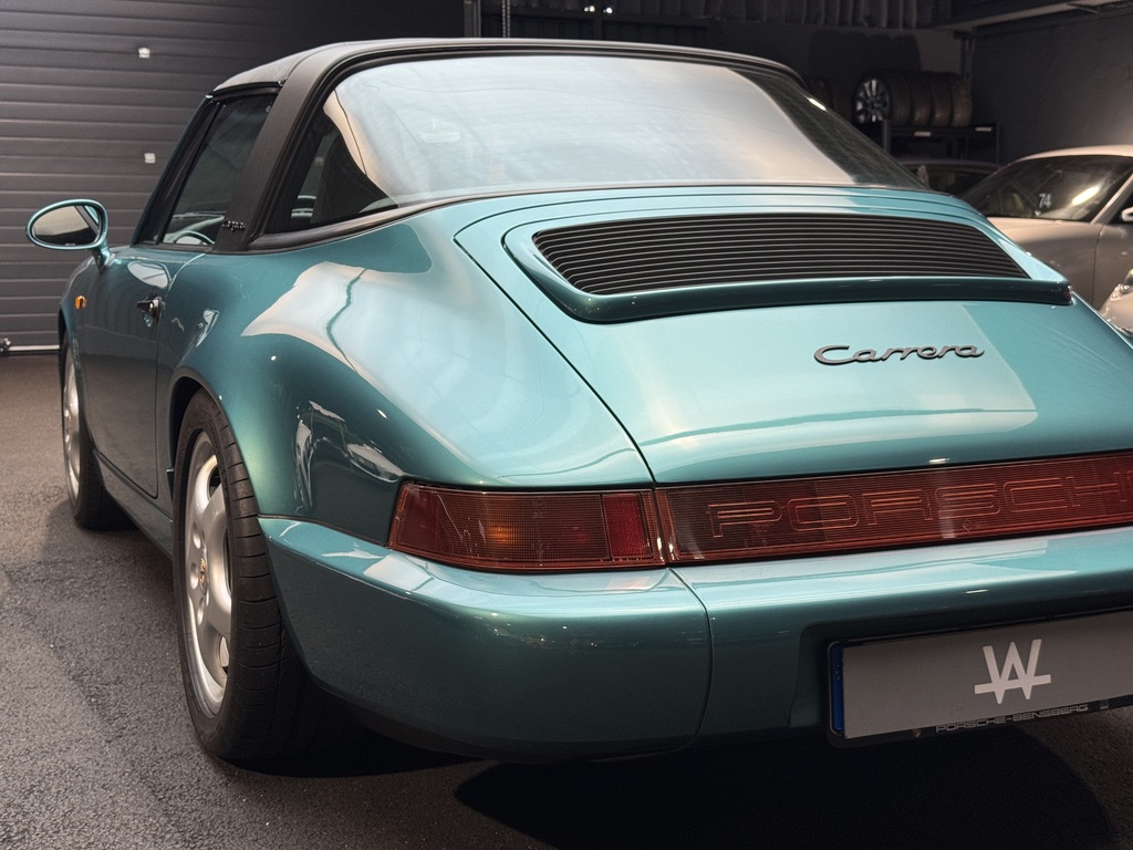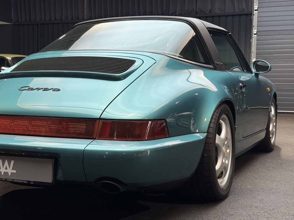 Ich biete Ihnen hier einen sehr seltenen PORSCHE 964 TARGA, denn der Wagen ist ein ohnehin seltener Targa als Schalter mit nur 75tkm, in Wimbledongrün und im einmaligen, fast neuwertigen Zustand mit voller Historie.