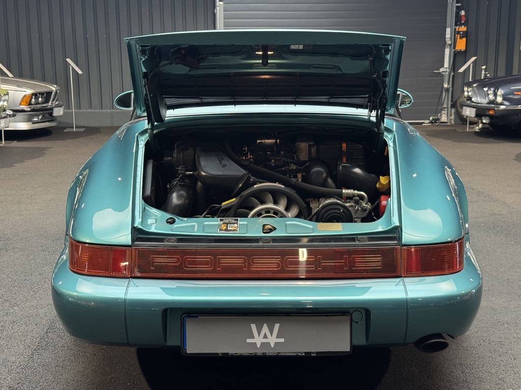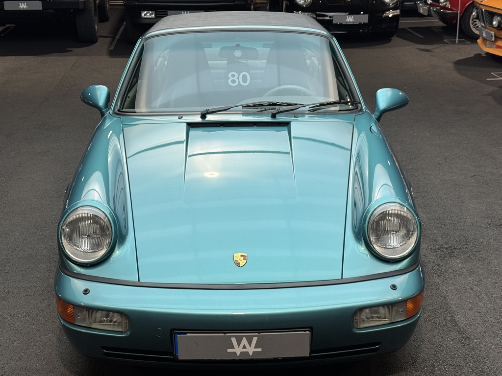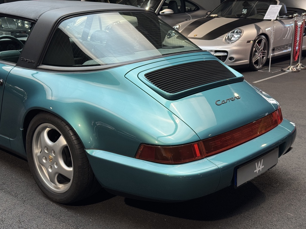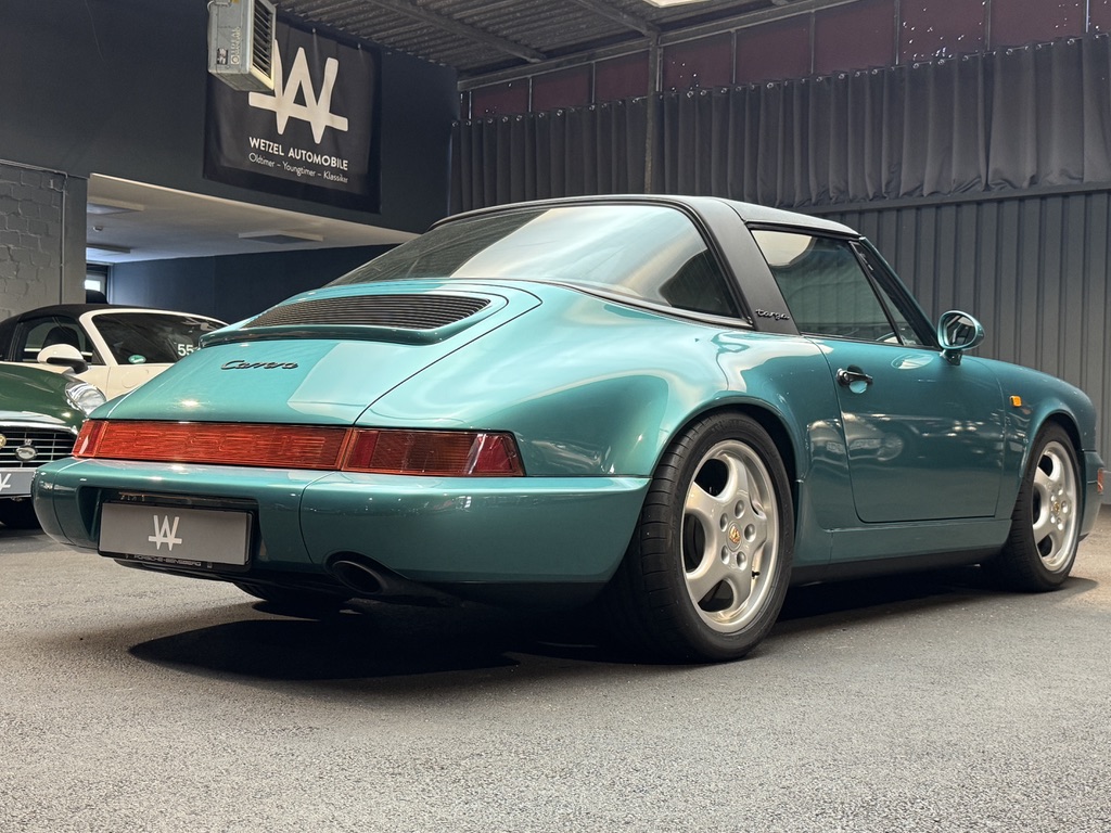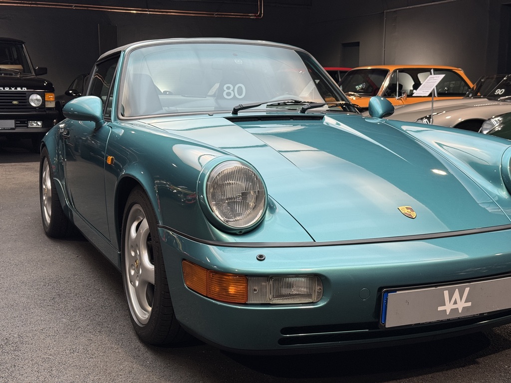 Ich biete Ihnen hier einen sehr seltenen PORSCHE 964 TARGA, denn der Wagen ist ein ohnehin seltener Targa als Schalter mit nur 75tkm, in Wimbledongrün und im einmaligen, fast neuwertigen Zustand mit voller Historie.