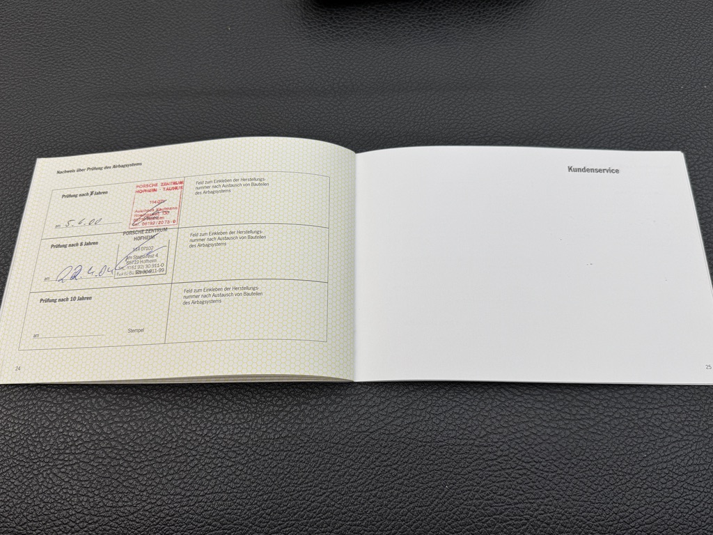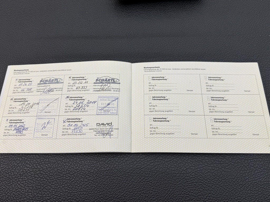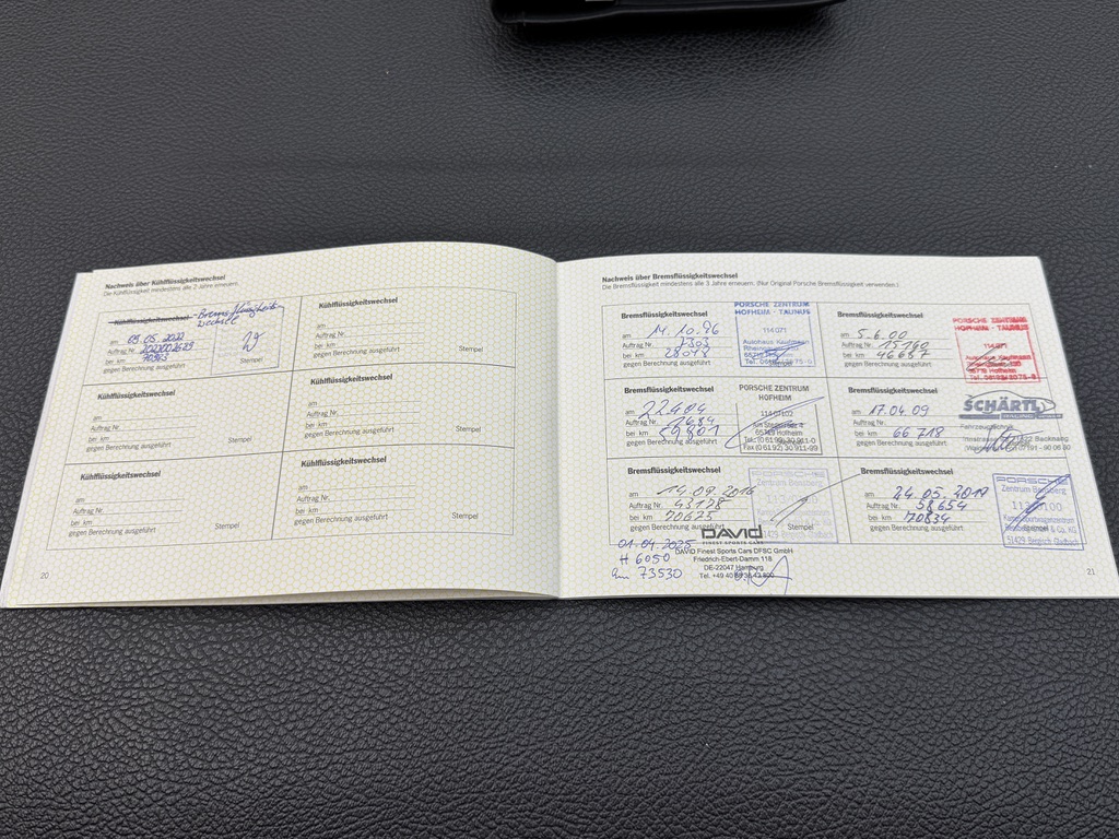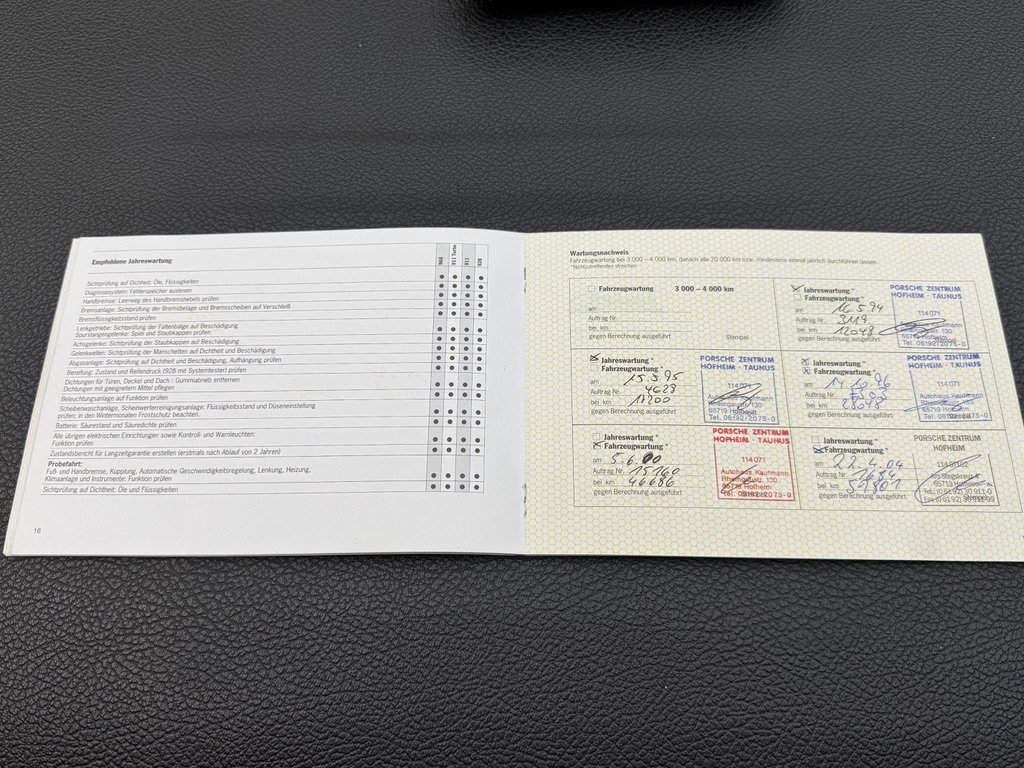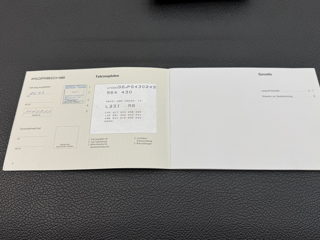 Von diesem Targa existiert die gesamte Historie. Von der originalen ersten Kaufrechnung an wird durch alle Briefe die gesamte Halterhistorie dokumentiert. Das Scheckheft ist gepflegt, die Bordmappe ist vorhanden. Zur Historie gehört auch viele Rechnungen der letzten Jahre, die ebenfalls Wartungen und Erneuerungen dokumentieren. Im Jahr 2024 wurden beispielsweise 10.000 € investiert. In diesem Jahr gab es einen frischen Service. Ein Wertgutachten bescheinigt einen Wert von 120.000 €. Dieser 964 ist so, wie man ihn sich erträumt: Der optische Zustand ist neuwertig und so fährt er auch. Innen wie außen ist alles makellos. Vor allem innen setzt die Volllederausstattung dem Ganzen noch eins drauf. Dies ist ein Fahrzeug für Sammler und für solche, die sich gewünscht hätten, den 964 damals als Neuwagen fahren und erleben zu können. In seltenem Wimbledongrün, als Targa und Schalter ist er eine echte Erscheinung, ein echter Hingucker.