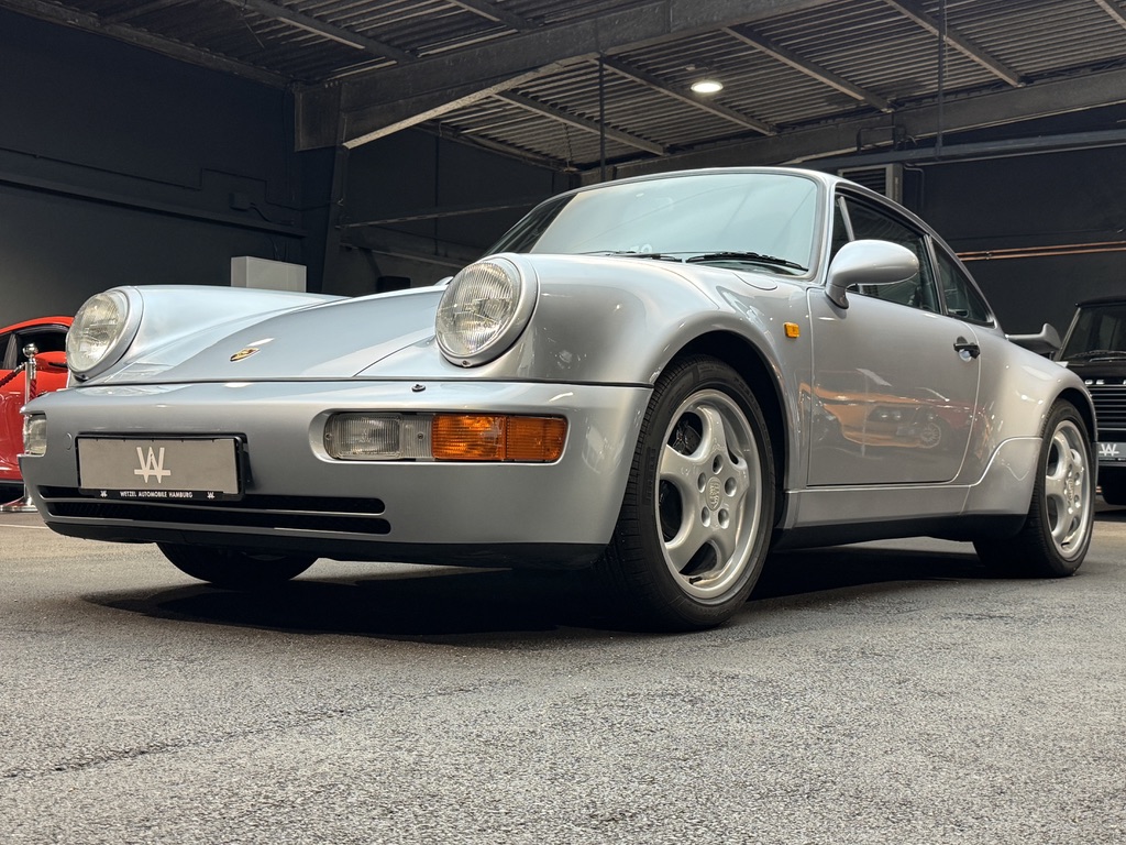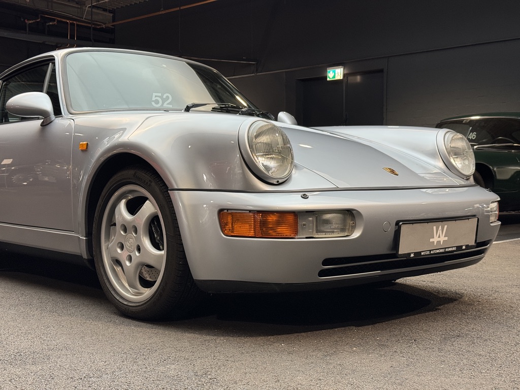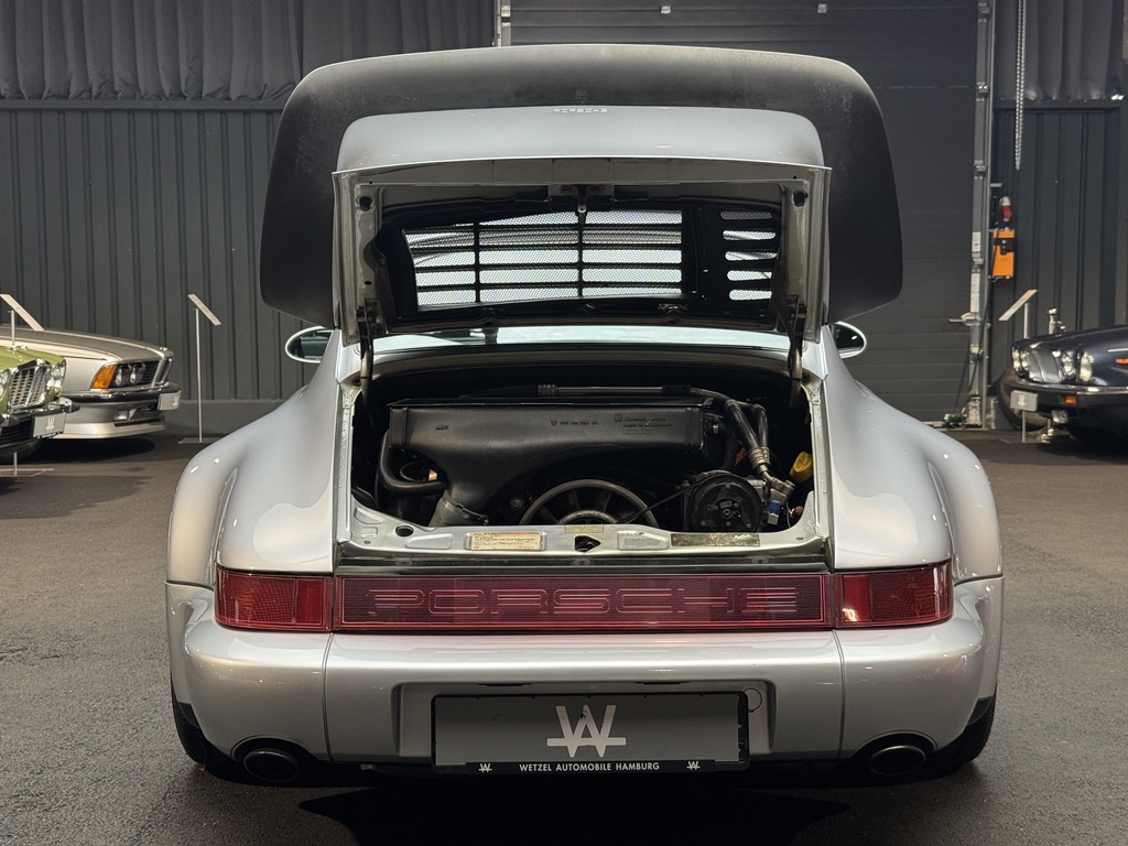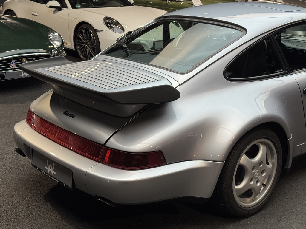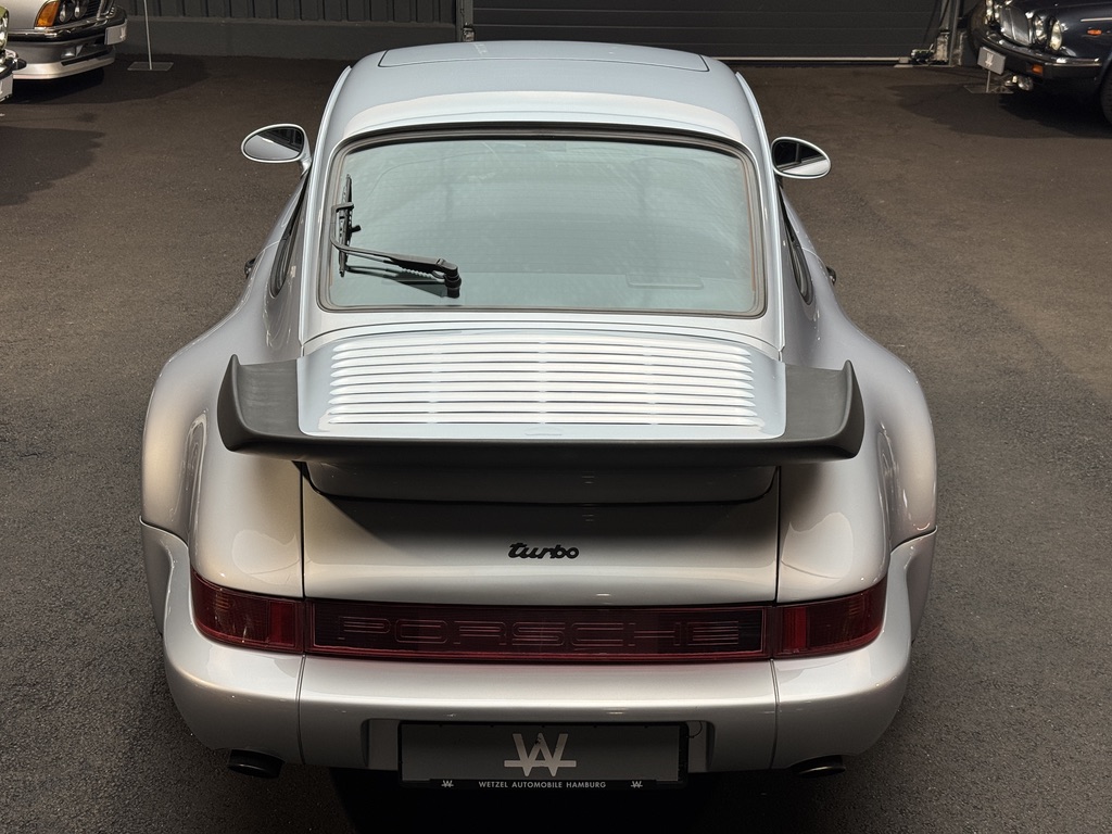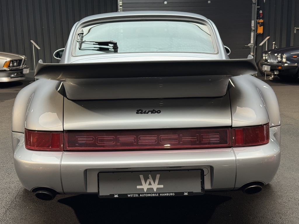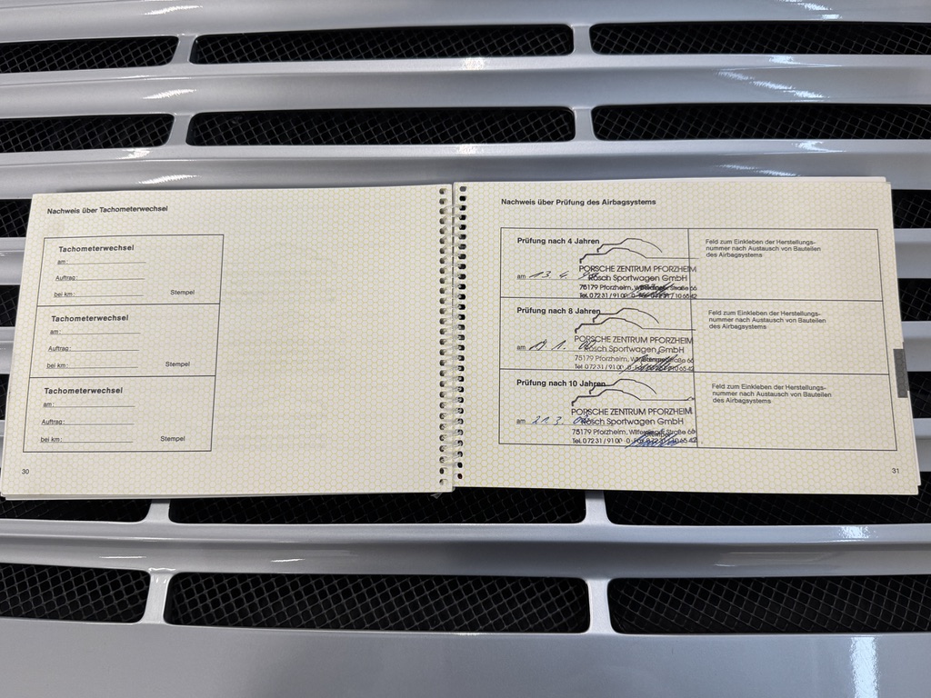Dieser Turbo in sehr stimmiger Farbkombination wurde im PZ Pforzheim an seinen einzigen Halter (Jahrgang 1936) ausgeliefert. Das Scheckheft wurde lückenlos im PZ Pforzheim bis auf einen Eintrag geführt. Dieser stammte damals von einer befreundeten Werkstatt. Die Rechnungshistorie der PZ-Rechnungen belegen Wartungen in Höhe von 20t€. Der jetzige Besitzer hat den Wagen von den Erben übernommen und vor Überführung auf Achse einen Check samt Ölwechsel vom PZ Pforzheim durchführen lassen. Hier in Hamburg gab es gerade einen sehr umfangreichen Service inkl. Überholung Kettenkästen bei David Sportscards für 15t€. Die aufgezogenen Reifen sind aus 2019 mit einer Laufleistung von lediglich 3.000km. Neben der Historie ist die Bordmappe erhalten sowie ein originaler Satz Zweitschlüssel, der augenscheinlich nie benutzt wurde. Die Schlüsselkarte mit Radiocode ist ebenso vorhanden und wirkt, als ob Sie zu einem Neuwagen gehören würde. Dieser 964 Turbo ist aufgrund seiner stimmigen Farbkombination, seiner ausgezeichneten Historie, seinem tadellosen Aussehen sowie dem technisch gut gewarteten Zustand sowohl ein Garant für perfekten 964-Königsklassen-Fahrspass als auch eine echte Investitionsanlage. Wenn Sie auf der Suche nach einem Porsche 911 Turbo sind, schauen Sie sich diesen 964 gern einmal an. Er steht in Hamburg in meiner Halle zur Besichtigung und bei schönem Wetter zur Probefahrt nach Terminvereinbarung zur Verfügung. Ich freue mich auf Ihren Besuch.