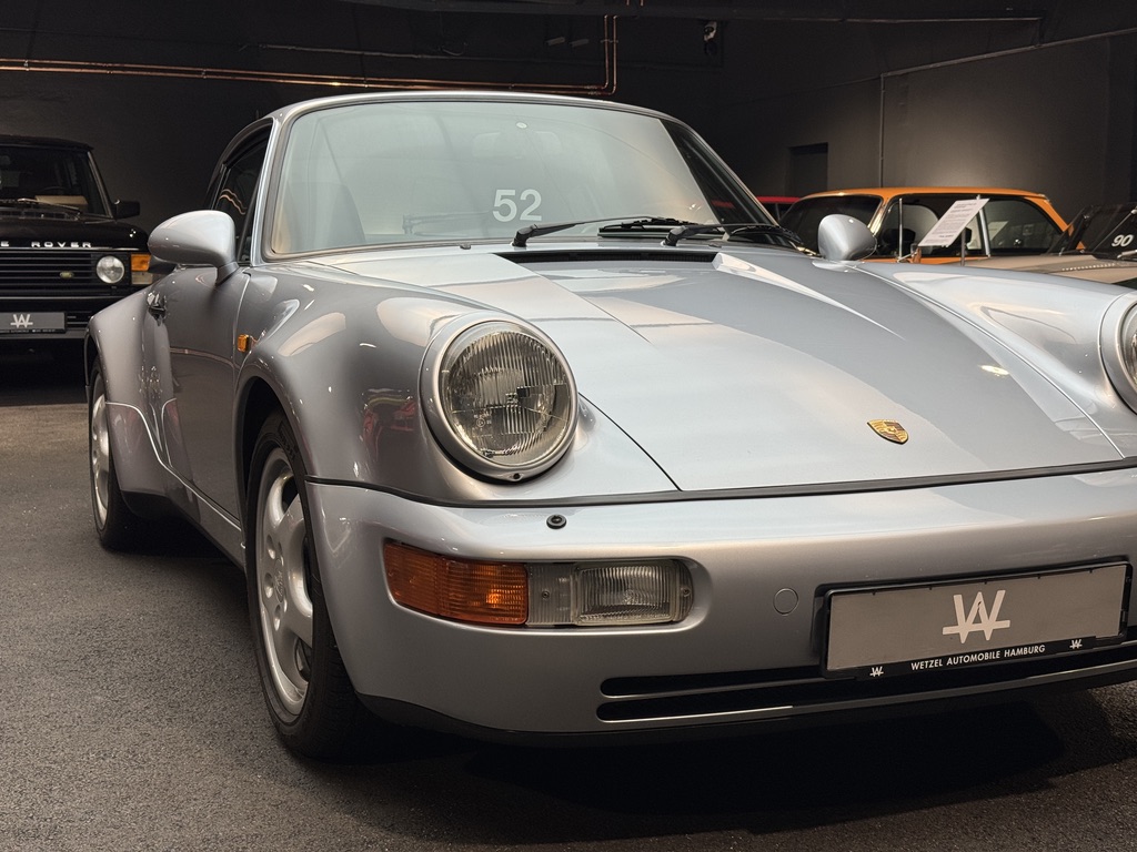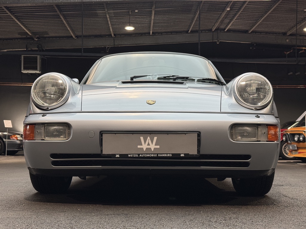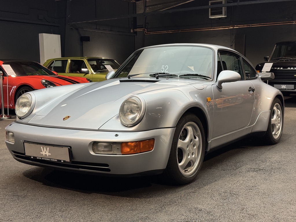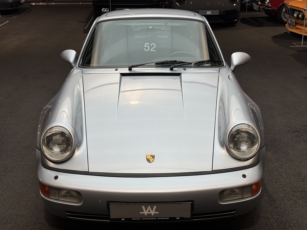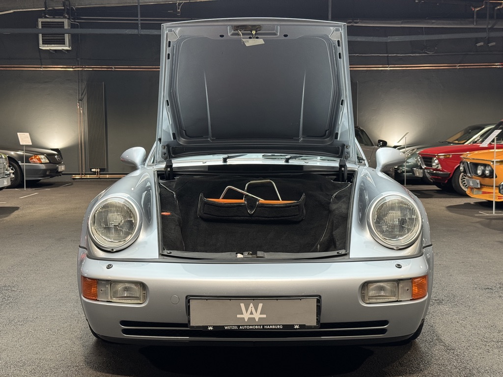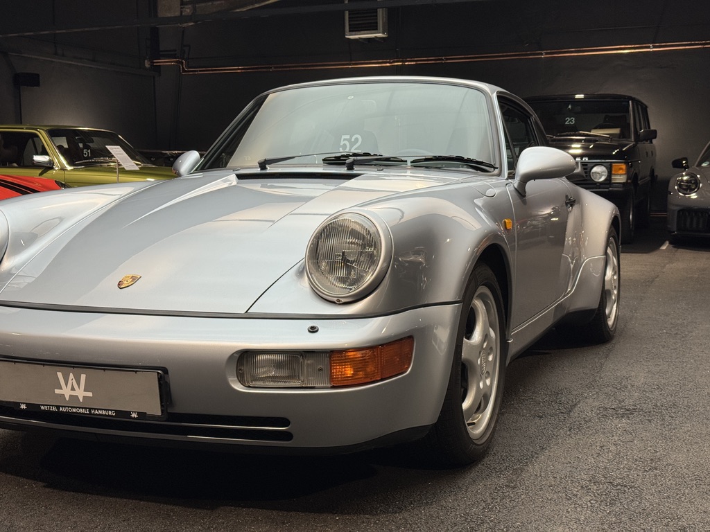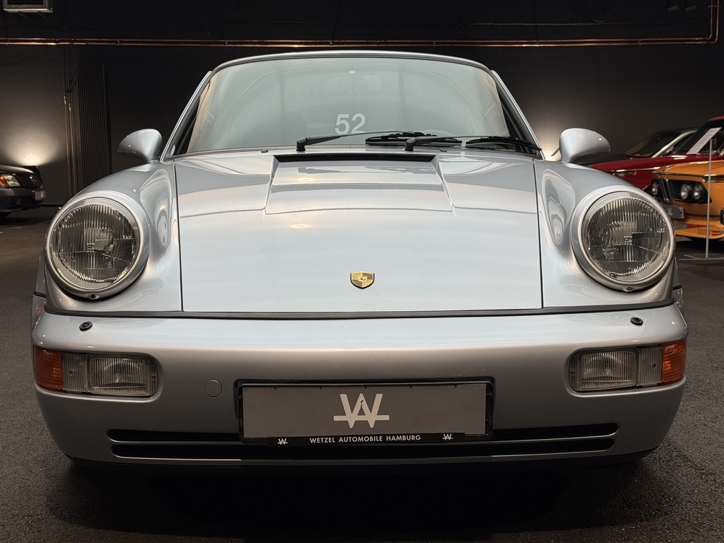 Dieser Turbo in sehr stimmiger Farbkombination wurde im PZ Pforzheim an seinen einzigen Halter (Jahrgang 1936) ausgeliefert. Das Scheckheft wurde lückenlos im PZ Pforzheim bis auf einen Eintrag geführt. Dieser stammte damals von einer befreundeten Werkstatt. Die Rechnungshistorie der PZ-Rechnungen belegen Wartungen in Höhe von 20t€. Der jetzige Besitzer hat den Wagen von den Erben übernommen und vor Überführung auf Achse einen Check samt Ölwechsel vom PZ Pforzheim durchführen lassen. Hier in Hamburg gab es gerade einen sehr umfangreichen Service inkl. Überholung Kettenkästen bei David Sportscards für 15t€. Die aufgezogenen Reifen sind aus 2019 mit einer Laufleistung von lediglich 3.000km. Neben der Historie ist die Bordmappe erhalten sowie ein originaler Satz Zweitschlüssel, der augenscheinlich nie benutzt wurde. Die Schlüsselkarte mit Radiocode ist ebenso vorhanden und wirkt, als ob Sie zu einem Neuwagen gehören würde. Dieser 964 Turbo ist aufgrund seiner stimmigen Farbkombination, seiner ausgezeichneten Historie, seinem tadellosen Aussehen sowie dem technisch gut gewarteten Zustand sowohl ein Garant für perfekten 964-Königsklassen-Fahrspass als auch eine echte Investitionsanlage. Wenn Sie auf der Suche nach einem Porsche 911 Turbo sind, schauen Sie sich diesen 964 gern einmal an. Er steht in Hamburg in meiner Halle zur Besichtigung und bei schönem Wetter zur Probefahrt nach Terminvereinbarung zur Verfügung. Ich freue mich auf Ihren Besuch.
